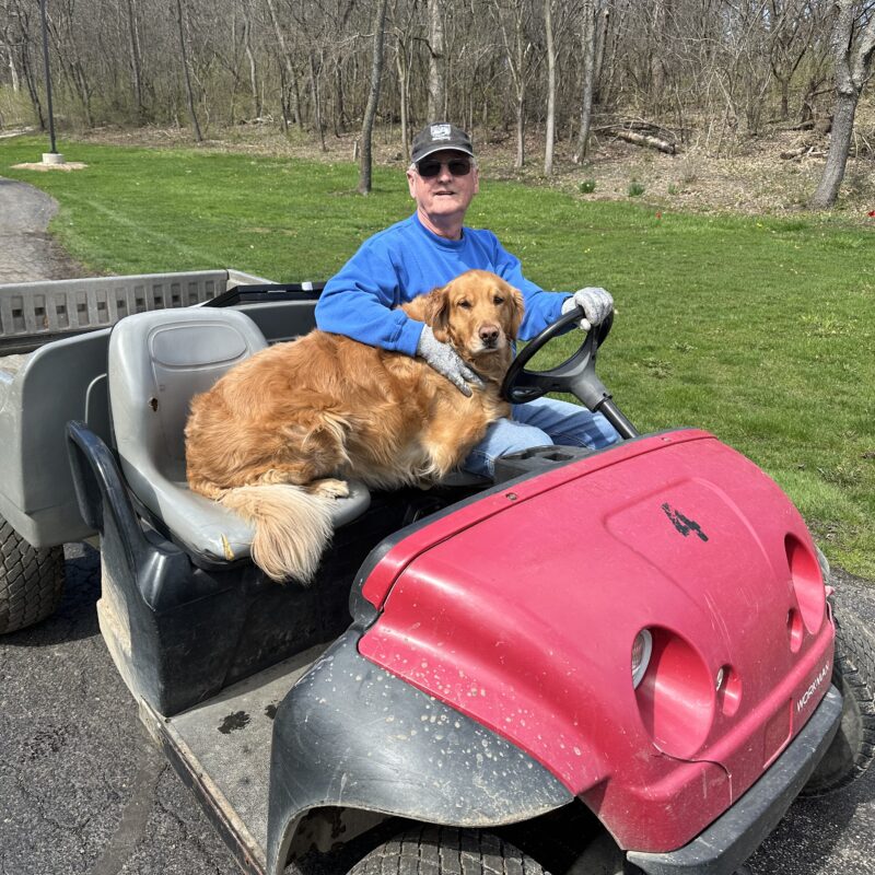Moses resides at Cor Jesu and can be found patrolling the ponds all summer long. He loves anything that squeaks, swimming, dog treats, all people, but most of all he loves balls. If you throw it, he will hunt it down and bring it back.